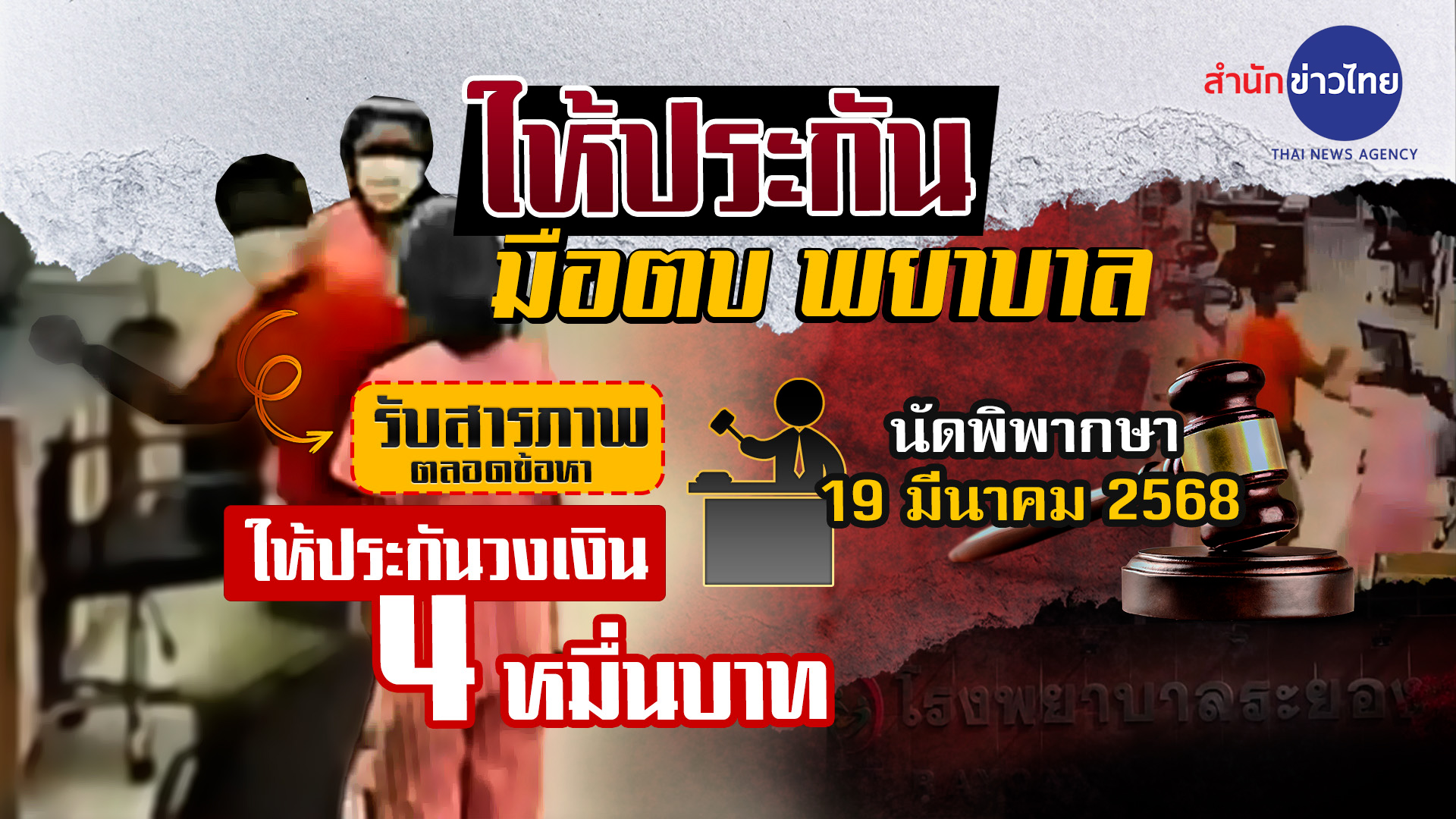 ความคืบหน้ากรณีนางพยาบาลของโรงพยาบาลระยอง ถูกชายหนุ่มญาติผู้ป่วยตบหน้า สาเหตุจากความไม่พอใจที่ถูกเตือนเรื่องนำเด็กเข้าเยี่ยมญาติในห้องไอซียู จนได้รับบาดเจ็บทั้งร่างกายและจิตใจ เหตุการณ์เกิดขึ้นตั้งแต่วันที่ 16 กุมภาพันธ์ที่ผ่านมา จนเกิดเป็นกระแสสังคมประณามพฤติกรรมใช้ความรุนแรงของหนุ่มมือตบ