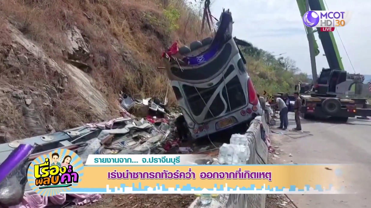 ปราจีนบุรี 26 ก.พ. – ย้อนดูสภาพที่เกิดเหตุรถทัวร์มรณะ 18 ศพ แหกโค้งทางลงเขา อ.นาดี จ.ปราจีนบุรี จนท.เร่งนำซากรถออกจากที่เกิดเหตุ และเปิดการจราจร ขณะที่ ก.คมนาคม เตรียมเพิ่มจุดพักรถทางขึ้นลงวังน้ำเขียว แก้ปัญหาซ้ำซาก. – สำนักข่าวไทย