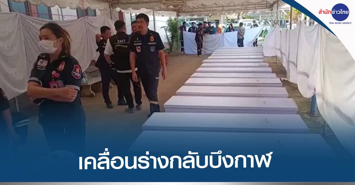 หลังจากพิสูจน์เอกลักษณ์ของผู้เสียชีวิตทั้งหมดแล้ว เบื้องต้นทางกู้ภัย จ.บึงกาฬ เดินทางมารับร่างผู้เสียชีวิตทั้งหมดที่ รพ.นาดี โดยทาง สส.บึงกาฬ มาเดินเรื่องเอง เพื่อไม่ให้ญาติพี่น้องของผู้เสียชีวิตต้องลำบากในการเดินทาง