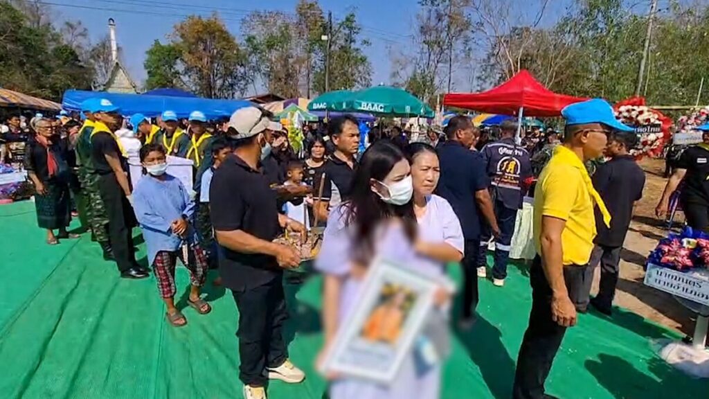 บึงกาฬ 1 มี.ค.-บรรยากาศ วัดป่าวิเวกธรรมคุณ จ.บึงกาฬ ญาติผู้เสียชีวิตทยอยร่วมพิธีเช้า ก่อนฌาปนกิจเหยื่อรถบัสมรณะ 13 ราย ช่วงบ่ายวันนี้ ส่วนที่วัดวิเวกพัฒนาราม ก็จะมีพิธีฌาปนกิจเหยื่ออีก 4 ราย ช่วงบ่ายเช่นกัน