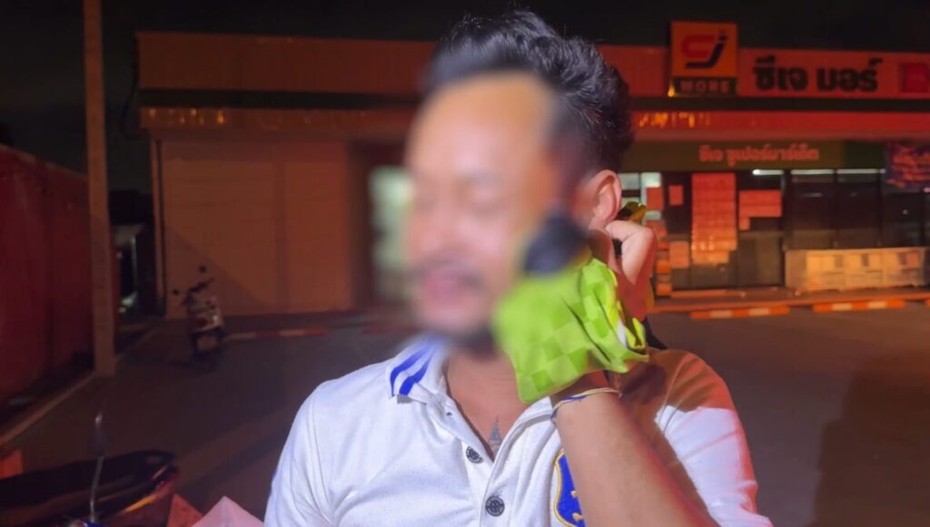 ช่วงตี 1 ที่ผ่านมา ตำรวจบางปู ได้รับแจ้งเหตุว่ามีชายถูกมีดฟันใบหน้าได้รับบาดเจ็บอยู่หน้าร้านหมูกะทะ ถนนบางพลี-ตำหรุ จ.สมุทรปราการ เมื่อไปตรวจสอบ พบนายภูวดล อายุ 29 ปี สามีของนางสาววิละชา อายุ 44 ปี ยืนรอการช่วยเหลืออยู่หน้าร้านหมูกะทะ โดยกรามซ้ายใกล้คอมีแผลถูกมีดเฉือนเป็นแผลลึก กู้ภัยต้องรีบปฐมพยาบาลห้ามเลือด ก่อนพาตัวส่งโรงพยาบาลใกล้เคียง
