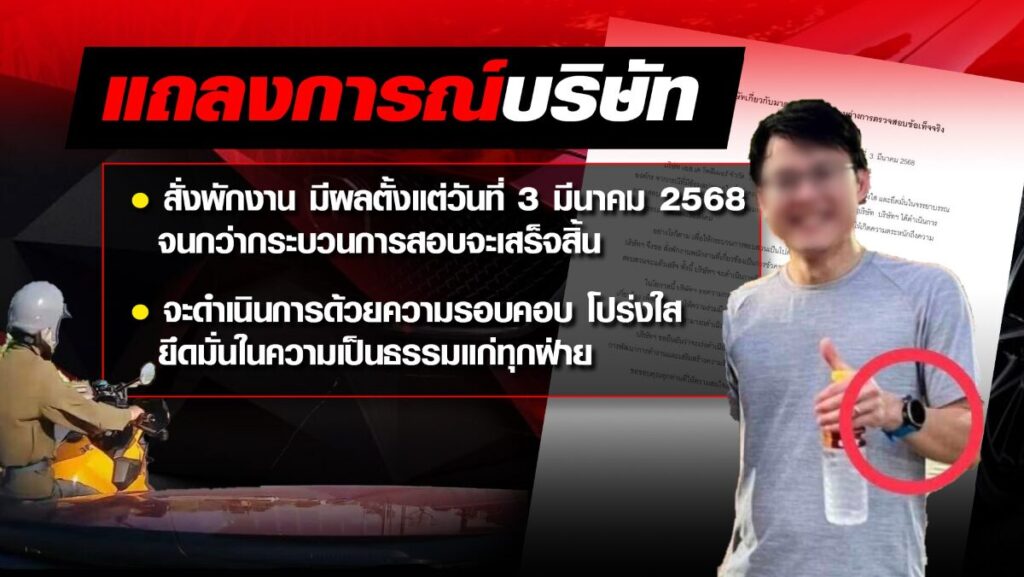 นอกจากนี้ มีแถลงการณ์จากบริษัทตันสังกัดของ “หนุ่มมาสด้าแดง” ว่า จากกรณีที่มีข้อมูลปรากฏในสื่อสังคมออนไลน์ ซึ่งเกี่ยวข้องกับพนักงานของบริษัท บริษัทฯ ได้ดำเนินการตรวจสอบเบื้องต้น และได้ให้คำแนะนำพร้อมทั้งตักเตือนพนักงานในเบื้องต้น เพื่อให้เกิดความตระหนักถึงความรับผิดชอบต่อตนเองและสังคม เพื่อให้กระบวนการสอบสวนเป็นไปด้วยความเรียบร้อย และเพื่อรักษาภาพลักษณ์ขององค์กร บริษัทฯ จึงขอสั่งพักงานพนักงานที่เกี่ยวข้องเป็นการชั่วคราว โดยมีผลตั้งแต่วันที่ 3 มีนาคม 2568 จนกว่ากระบวนการสอบสวนจะแล้วเสร็จ ทั้งนี้ บริษัทฯ จะดำเนินการด้วยความรอบคอบ โปร่งใส และยึดมั่นในความเป็นธรรมต่อทุกฝ่าย บริษัทฯ ยืนยันว่าจะเร่งดำเนินการเรื่องนี้ให้แล้วเสร็จโดยเร็วที่สุด.-สำนักข่าวไทย