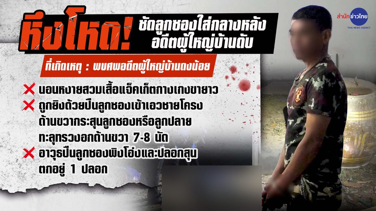 เหตุเกิดภายในบ้านหลังหนึ่งใน อ.เมือง จ.สกลนคร บริเวณหน้าห้องน้ำ พบศพนายเทิม อายุ 51 ปี อดีตผู้ใหญ่บ้านดงน้อย มีบาดแผลถูกยิงด้วยปืนลูกซองเข้าบริเวณเอวชายโครงด้านขวา ทะลุอกด้านขวา 7-8 นัด ใกล้กัน พบอาวุธปืนลูกซองพิงโอ่ง และปลอกสุนตกอยู่ 1 ปลอก
