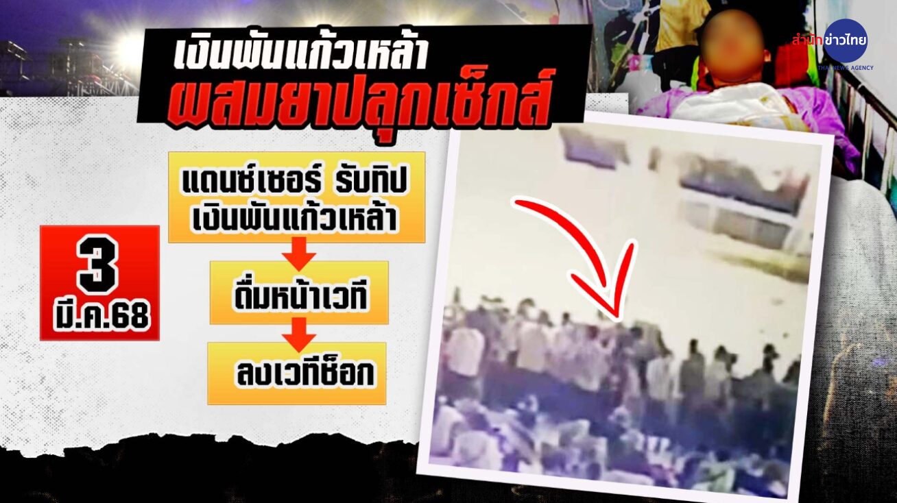 กำแพงเพชร 5 มี.ค. – ได้เบาะแสแล้ว คนดูยื่นเหล้าพันแบงก์พันให้แดนเซอร์ชาย กินไปแก้วเดียว ช็อกหมดสติ หมอเผยมีส่วนผสมยาปลุกเซ็กซ์