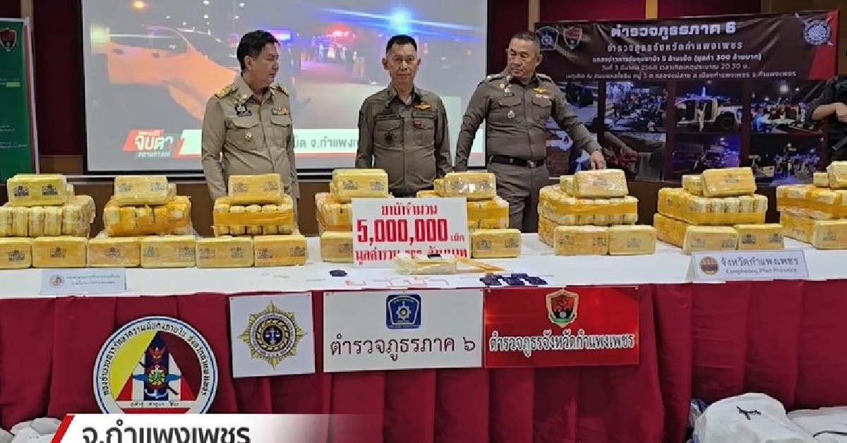 กำแพงเพชร 6 มี.ค. – ตำรวจเปิดปฏิบัติการไล่ล่าสกัดจับแก๊งค้ายาบ้า ยึดของกลาง 5 ล้านเม็ด