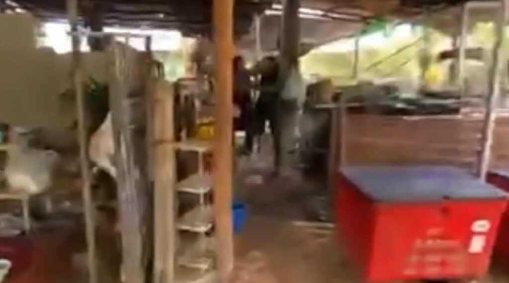 ชายเสื้อดำแก๊งเงินกู้มาทวงเงินแม่ค้าร้านก๋วยเตี๋ยว โดยแม่ค้าถือท่อนไม้ขู่ชายเสื้อดำ พร้อมบอกว่า “ไม่จ่าย” ก่อนชายเสื้อดำจะเดินเข้าไปหาและทำร้ายร่างกายแม่ค้า เหตุการณ์เกิดขึ้นเมื่อวันที่ 8 มี.ค.ที่ผ่านมา