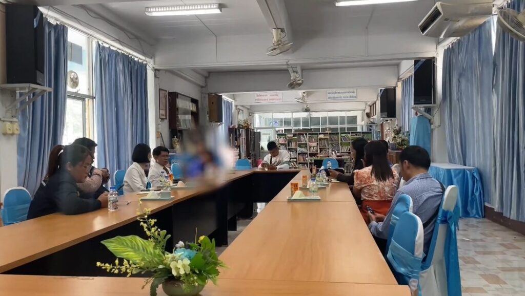 วันนี้ (13 มี.ค.) ที่ห้องประชุมโรงเรียนแห่งหนึ่งใน อ.บ้านไผ่ จ.ขอนแก่น ผอ.รร. พร้อมเจ้าหน้าที่จากเขตพื้นที่การศึกษาประถมศึกษาขอนแก่นเขต 2 และทีมสหวิชาชีพ ตำรวจ สภ.บ้านไผ่ นักจิตวิทยาได้ร่วมประชุมหาแนวทางช่วยเหลือผู้เสียหาย โดยเชิญนางอัมพร อายุ 40 ปี แม่ของน้องโอมอายุ 13 ปี นร.ชั้น ป.5 ที่ถูกทำร้าย มาสอบถามรายละเอียดและสาเหตุที่เกิดขึ้น โดยใช้เวลาพูดคุยเกือบ 2 ชั่วโมง ได้ข้อสรุปแนวทาง ช่วยเหลือตามที่ผู้ปกครองเป็นห่วง ด้าน ผอ.รร. เปิดเผยว่า เหตุการณ์ดังกล่าวเกิดขึ้นนอกโรงเรียน ก่อนมีการเผยแพร่คลิปทางโซเชียล กระทั่งโรงเรียนทราบเรื่องได้ติอต่อครอบครัวผู้เสียหายเพื่อสอบถามเหตุการณ์ที่เกิดขึ้นทันทีพร้อมรายงานสำนักงานเขตพื้นที่การศึกษาประถมศึกษาขอนแก่นเขต 2 และช่วยเหลือพานักเรียนถูกทำร้ายไปตรวจร่างกาย และแจ้งความที่ สภ.บ้านไผ่ ทันที