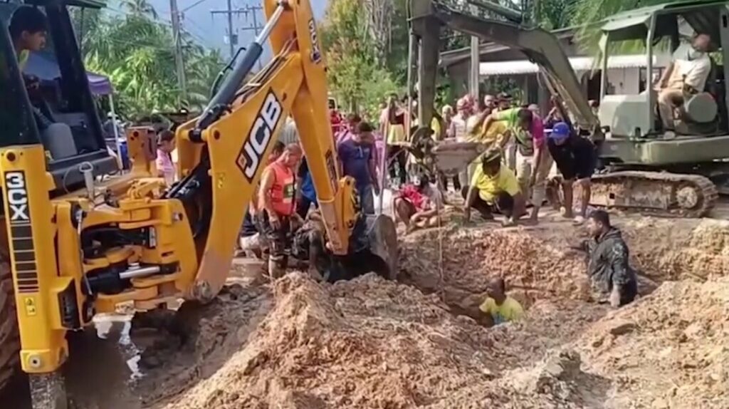 เวลาประมาณ 15.00 น. เมื่อวานนี้ (17 มี.ค.) ตำรวจ สภ.ขนอม จ.นครศรีธรรมราช เข้าตรวจสอบเหตุดินุถล่มทับคนงานฝังท่อประปา ที่ถนนหลังวัดสุวรรณ อ.ขนอม เมื่อเข้าไปถึง พบเพื่อนคนงานและชาวบ้านได้ช่วยกันเร่งขุดหาผู้สูญหายใต้ดิน และได้ช่วยออกมาได้ 2 รายอยู่ในสภาพอ่อนเพลียอย่างหนัก ส่วนอีก 2 คนถูกฝังทั้งเป็นอยู่ใต้ดินลึก เจ้าหน้าที่จึงใช้รถแบ็กโฮเข้าช่วยเหลือด้วยความระมัดระวัง พยายามขุดรื้อจนพบร่างทั้ง 2 คน แต่ไม่สามารถช่วยชีวิตไว้ได้ทัน ทั้งคู่เสียชีวิตแล้ว ทราบชื่อ นายวรพงษ์ อายุ 48 ปี และนายกฤษฎา อายุ 31 ปี เป็นคนงานวางท่อประปา