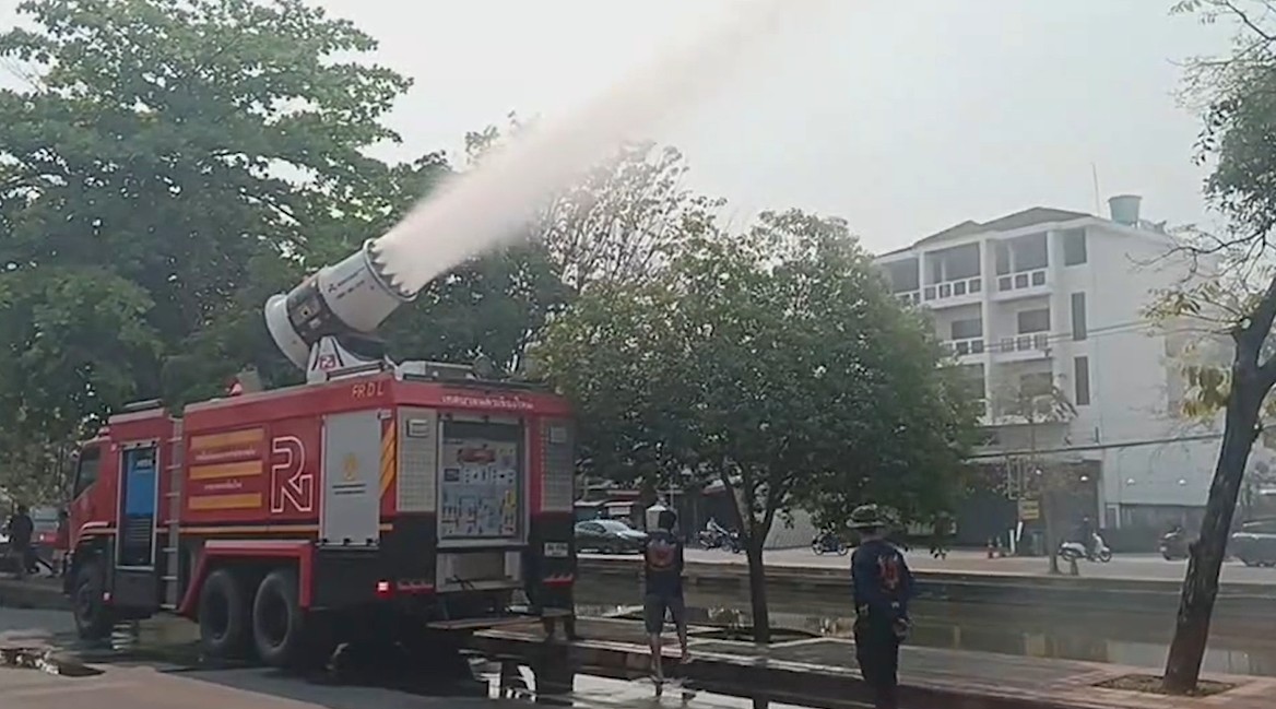 เทศบาลนครเชียงใหม่ นำรถบรรทุกน้ำติดตั้งเครื่องพ่นละอองน้ำแรงดันสูงไปจอดบริเวณรอบคูเมืองเชียงใหม่ ที่ถูกหมอกควันไฟป่าปกคลุม จนทัศนวิสัยขุ่นมัว เพื่อพ่นละอองน้ำเพิ่มความชื้นในอากาศ ลดหมอกควันไฟป่าที่ปกคลุมตัวเมืองเชียงใหม่ ติดต่อกันมาหลายวัน รวมทั้งเปิดน้ำพุรอบคูเมืองเพิ่มความชื้น ซึ่งค่ามลพิษ หรือ PM 2.5 สูงเกินค่ามาตรฐาน