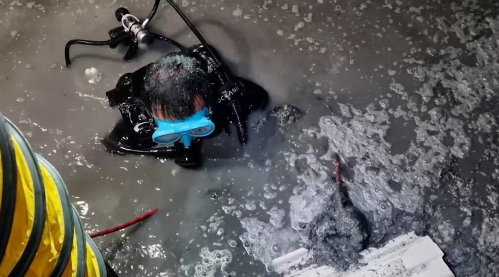ระหว่างนั้นนายศราวุธยังมีสติ และพยายามยื่นมือขึ้นมาขอความช่วยเหลือ แต่ตนเองไม่สามารถช่วยได้ทัน ไม่ถึงนาทีนายศราวุธน่าจะสูดก๊าซไข่เน่าทำให้หมดสติจมลงไปใต้น้ำ ส่วนรถกระบะเป็นของนายจ้างที่เป็นช่างไฟฟ้า หลังทำงานเสร็จได้ยืมขับมาหาญาติที่ จ.สมุทรปราการ