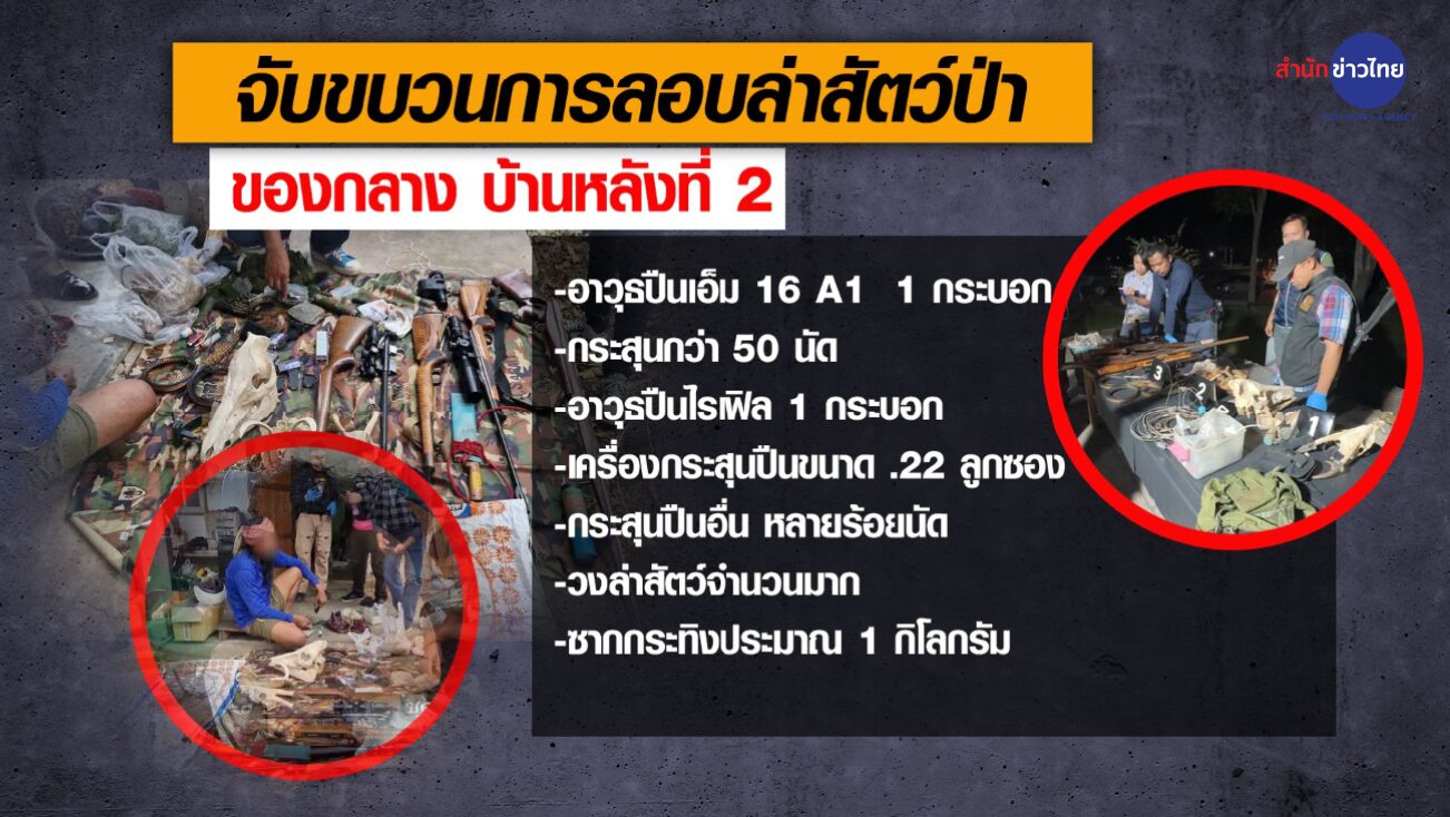 ต่อมาขยายผล จับกุมนายสุพจน์ อายุ 44 ปี พร้อมของกลาง อาวุธปืนเอ็ม 16 A1 รวม 1 กระบอก พร้อมกระสุนกว่า 50 นัด อาวุธปืนไรเฟิล 1 กระบอก เครื่องกระสุนปืนขนาด .22 ลูกซอง กระสุนปืนอื่น ร่วมหลายร้อยนัด บ่วงล่าสัตว์จำนวนมาก และซากกระทิงประมาณ 1 กิโลกรัม จากนั้นได้นำตัวนายสุพจน์ ไปเอาบัตรประชาชนที่บ้านญาติ ห่างจากจุดเกิดเหตุประมาณ 200 เมตร ตรวจสอบภายในบ้านพกปืนลูกซอง 5 นัด 1 กระบอก พร้อมเครื่องกระสุนปืนลูกซอง 6 นัด จึงตรวจยึดไว้เป็นหลักฐาน