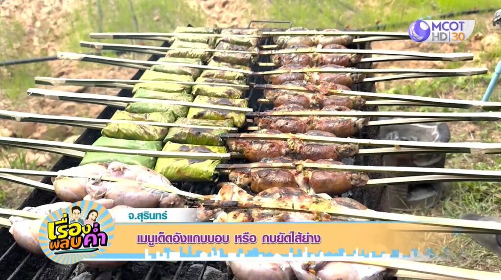 สุรินทร์ 7 เม.ย. – อร่อยต้องลอง “อังแกบบอบ” หรือ กบยัดไส้ย่าง เมนูเด็ดขึ้นชื่อ อ.ปราสาท จ.สุรินทร์ หอมกลิ่นเครื่องปรุงสมุนไพร ใครผ่านมาต้องแวะซื้อ
