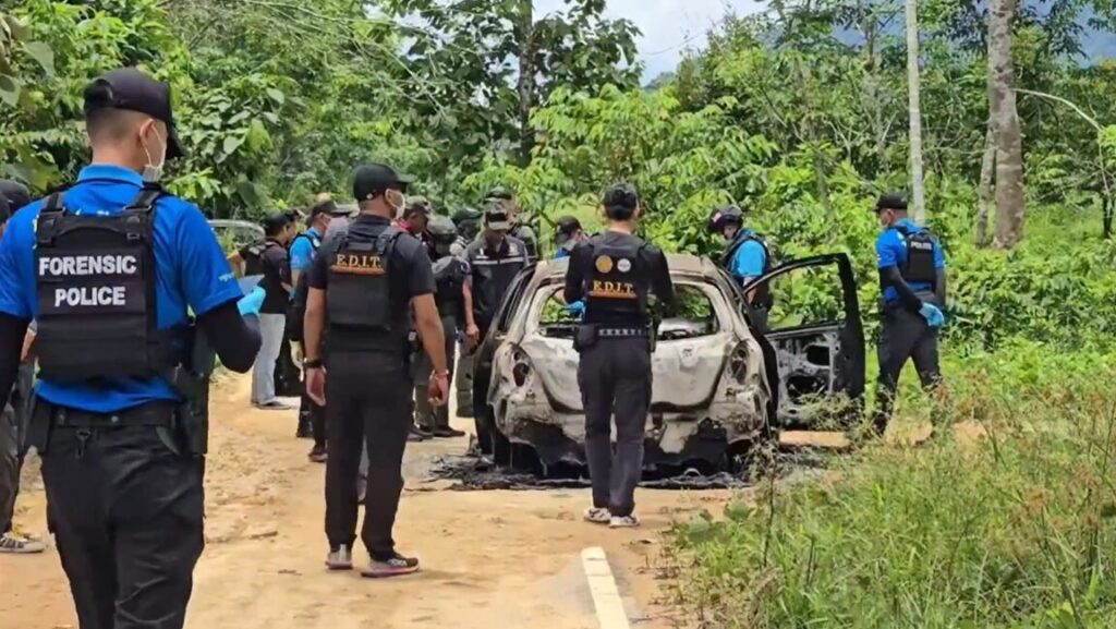 นราธิวาส 10 เม.ย. – ลอบยิงรองสารวัตร สังกัดตำรวจภูธร จ.นราธิวาส เสียชีวิต พร้อมขโมยอาวุธปืนแล้วจุดไฟเผารถ ซ้ำยังกดระเบิดขณะย้ายร่างแต่พลาดเป้า ถูกรถกระบะขอเกาะขบวน บาดเจ็บอีก 2 ราย