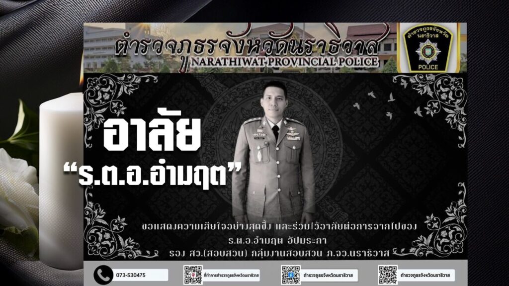 ขณะที่เพจเฟซบุ๊ก ของตำรวจภูธรจังหวัดนราธิวาสโพสต์ข้อความ “ตำรวจภูธรจังหวัดนราธิวาส ขอแสดงความอาลัยอย่างสุดซึ้งต่อการจากไปของ ร.ต.อ.อำมฤต อัปมระกา รอง สว.(สอบสวน) กลุ่มงานสอบสวน ภ.จว.นราธิวาส ข้าราชการตำรวจผู้ปฏิบัติหน้าที่ด้วยความเสียสละและกล้าหาญ สมเกียรติแห่งผู้พิทักษ์สันติราษฎร์ ขอให้ดวงวิญญาณของท่านไปสู่สุคติในสัมปรายภพและขอเป็นกำลังใจให้ครอบครัว ตลอดจนเพื่อนข้าราชการตำรวจทุกนายที่ยังคงปฏิบัติหน้าที่ด้วยจิตวิญญาณแห่งความเสียสละ.-สำนักข่าวไทย
