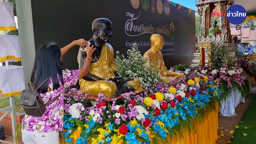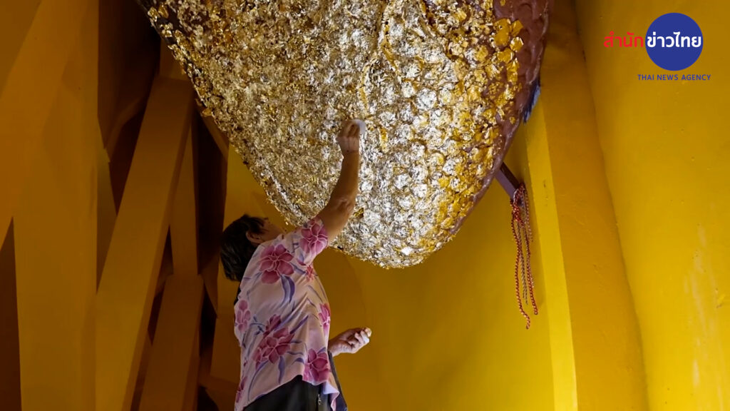 สงขลา 12 เม.ย.- สีสันสงกรานต์หาดใหญ่ ประชาชนและนักท่องเที่ยวแห่ปิดทองหัวใจองค์พระนอน วัดมหัตตมังคลาราม เพื่อความเป็นสิริมงคล เปิดให้เข้าแค่ปีละครั้ง