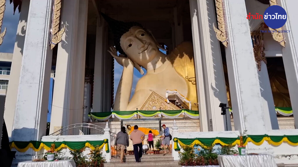 วันนี้เป็นวันแรกที่เปิดให้ประชาชนและนักท่องเที่ยวเข้าไปปิดทองหัวใจพระพุทธมหัตตมงคล ที่อยู่ภายในองค์พระพุทธมหัตตมังคลาราม หรือพระนอน ซึ่งหลายคนอาจยังไม่รู้ว่าภายในองค์พระนอนมีหัวใจอยู่ด้วย และจะเปิดให้เข้าปิดทองหัวใจพระนอนแค่ปีละครั้ง เฉพาะช่วงเทศกาลสงกรานต์เท่านั้น