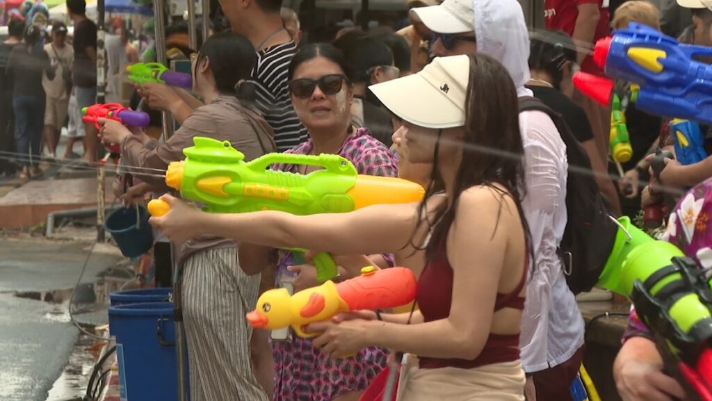 เชียงใหม่ 12 เม.ย. – เล่นน้ำสงกรานต์วันแรกที่ จ.เชียงใหม่ ยิ่งร้อนยิ่งคึกคัก โดยเฉพาะรอบคูเมือง และลานประตูท่าแพ แหล่งรวมนักท่องเที่ยวต่างชาติที่ออกมาเล่นน้ำกันอย่างสนุกสนาน
