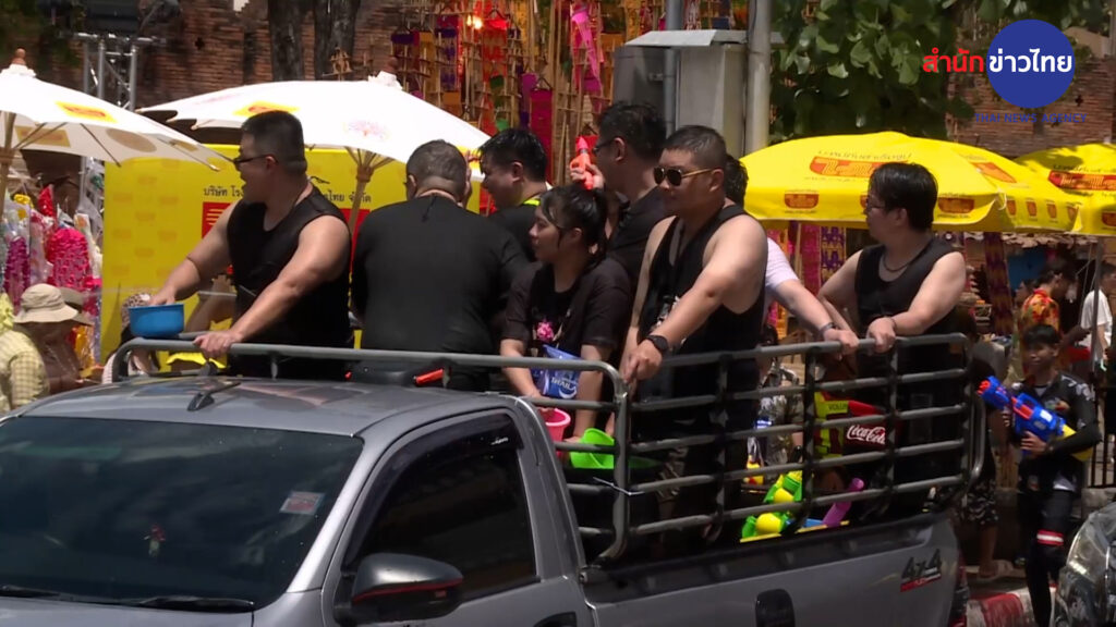 ลานประตูท่าแพกลางเมืองเชียงใหม่ เริ่มมีชาวเชียงใหม่และนักท่องเที่ยว ออกมาเล่นน้ำบริเวณท่าแพเชื่อมต่อกับคูเมืองเชียงใหม่ กันสนุกสนาน ท่ามกลางอากาศที่ร้อนอบอ้าว มีทั้งเดินถือปีนฉีดน้ำ บางส่วนขี่รถจักรยานยนต์ หรือใช้กระบะบรรทุกถังน้ำ ตระเวนเล่นน้ำไปรอบคูเมือง ทำให้การจราจรเริ่มติดขัดบ้างแล้ว