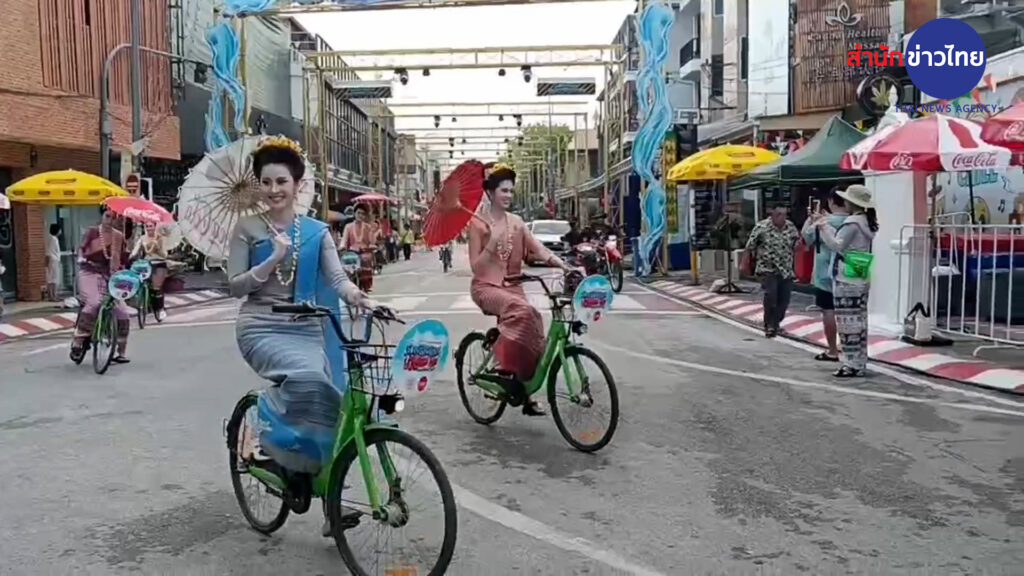เชียงใหม่ 13 เม.ย.- เริ่มแล้ว ประเพณีปี๋ใหม่เมือง หรือสงกรานต์ล้านนา ที่เชียงใหม่ ตระการตาสีสันวัฒนธรรมล้านนา พร้อมชมความงามของแม่หญิงขี่รถถีบกางจ้อง หนึ่งเดียวในไทย ขณะที่รอบคูเมืองเชียงใหม่-ลานประตูท่าแพ เล่นน้ำสงกรานต์คึกคัก