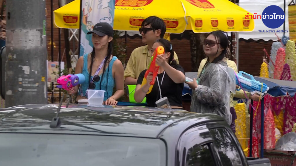 สภาพอากาศที่เชียงใหม่ช่วงเที่ยงเย็นสบาย หลังจากเมื่อคืนที่ผ่านมา มีฝนตกหลายพื้นที่ จึงลดความอบอ้าวลง เหมาะกับการเล่นน้ำสงกรานต์อย่างมาก อย่างบริเวณลานประตูท่าแพ เชื่อมต่อถนนรอบคูเมือง เริ่มมีชาวเชียงใหม่รวมถึงนักท่องเที่ยวทั้งไทยและต่างชาติ ออกมาเล่นน้ำสงกรานต์กันคึกคักเร็วกว่าทุกวัน แต่ละคนต่างจัดหนักจัดเต็ม ทั้งหมวก แว่นตา พร้อมอุปกรณ์เล่นน้ำกันครบมือ ไม่ว่าจะเป็นปืนฉีดน้ำทั้งขนาดเล็ก ขนาดใหญ่ เหมือนเป็นอาวุธประจำกาย ออกมาเดินเล่นฉีดน้ำสาดใส่กันน้ำบนลานประตูท่าแพ อย่างสนุกสนาน หลายคนขี่มอเตอร์ไซค์คู่ใจออกมาตระเวนเล่นน้ำ และอีกหลายคนนำรถยนต์กระบะบรรทุกถังน้ำพาครอบครัวและเพื่อนๆออกสาดน้ำรอบคูเมือง จนถนนรอบคูเมืองตอนนี้เริ่มมีรถหนาแน่นขึ้นเรื่อยๆ