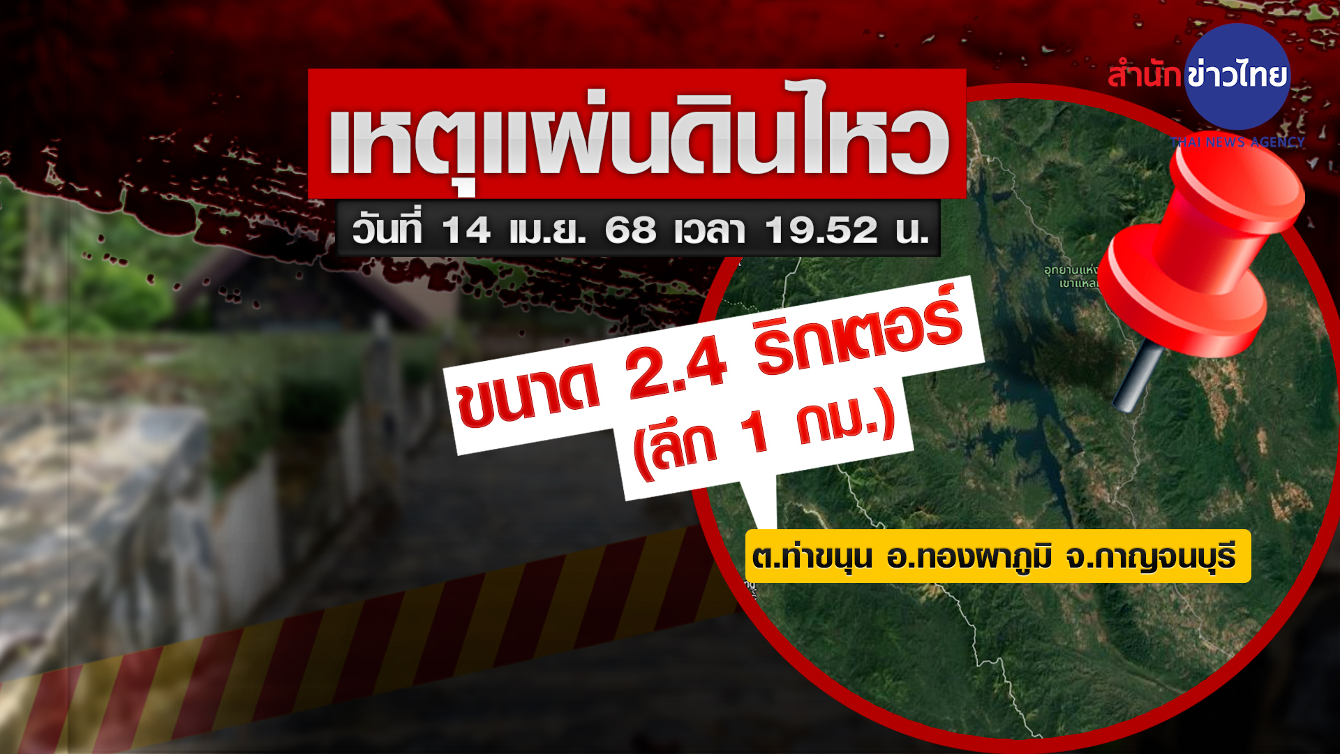 จากกรณีเมื่อเวลา 19.52 น. วันที่ 14 เมษายน 2568 เว็บไซต์กองเฝ้าระวังแผ่นดินไหว รายงานว่าเกิดเหตุแผ่นดินไหวบริเวณ ต.ท่าขนุน อ.ทองผาภูมิ จังหวัดกาญจนบุรี ขนาด 2.4 ความลึก 1 กิโลเมตร