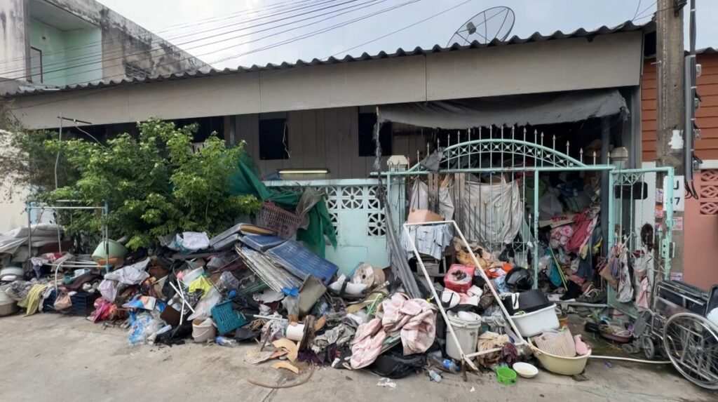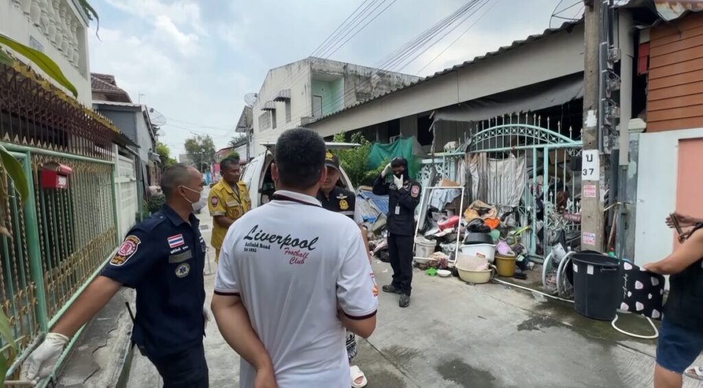 ต่อมา เจ้าหน้าที่ไปถึงที่เกิดเหตุ อยู่ในซอยฉิมพูลสุข 1 ถนนหนามแดงบางพลี ต.บางแก้ว อ.บางพลี จ.สมุทรปราการ เป็นบ้านพักชั้นเดียว พบกองขยะสูงเท่าหลังคาบ้าน จนไม่มีทางเดิน มีเพียงช่องว่างคือจุดที่ผู้เสียชีวิตนอนอยู่ข้าง มารดาวัย 75 ปี ซึ่งเป็นผู้ป่วยติดเตียง เจ้าหน้าที่กู้ภัยต้องนำร่างออกมาอย่างทุลักทุเล