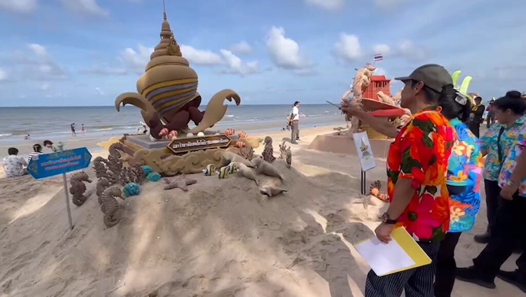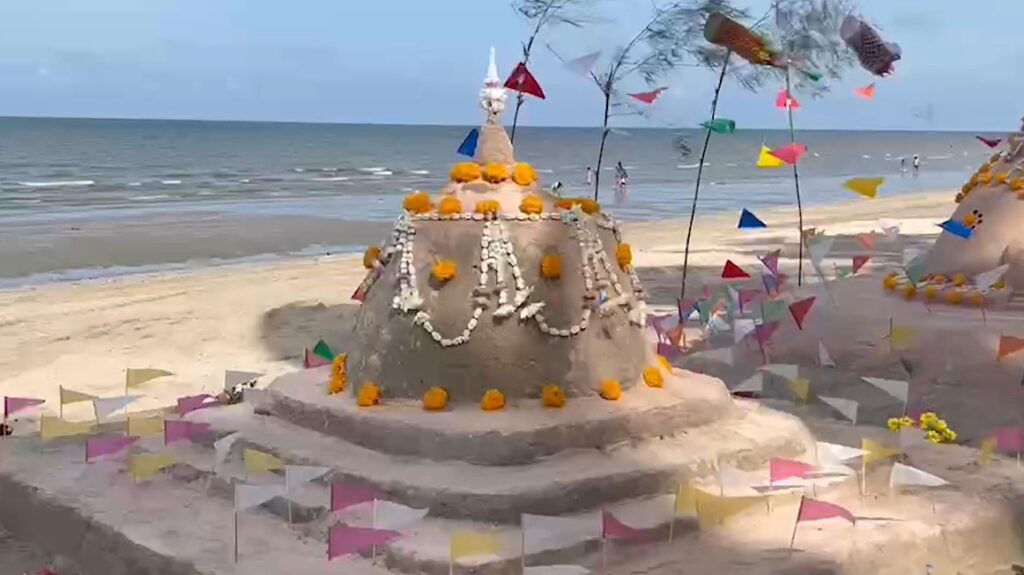 ชลบุรี 17 เม.ย. – วันไหลบางแสนคึกคัก นักท่องเที่ยวแห่เข้าชมเจดีย์พระทรายกว่า 55 กอง ที่สวยสุดอลังการ