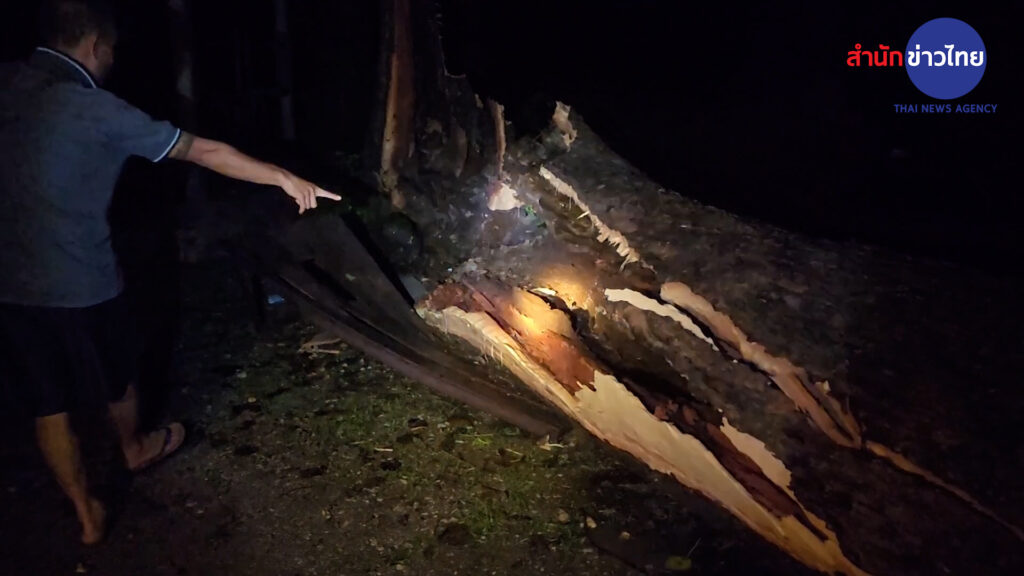 ลำปาง 20 เม.ย.- พายุฝนลมกระโชกแรง ซัดต้นยางอายุร่วม 100 ปี วัดนางเหลียว ล้มทับโรงครัวพังเสียหาย ชาวบ้านในงานศพตื่นตระหนก วิ่งหนีกระเจิง
