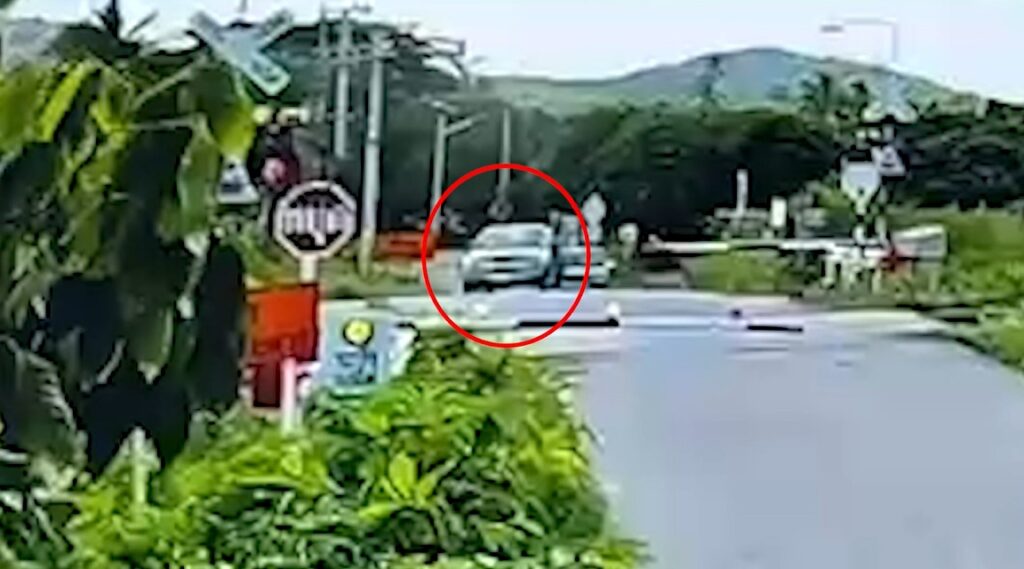 จากการสอบสวนเบื้องต้นและการตรวจสอบภาพจากกล้องวงจรปิด พบว่ารถกระบะคันดังกล่าวพยายามขับฝ่าไม้กั้นทางรถไฟ เพื่อข้ามไปยังอีกฝั่ง แต่ไม่พ้นถูกรถไฟชนเข้าด้านหน้าของรถอย่างจัง เป็นเหตุให้นายประเสริฐ อายุ 69 ปี คนขับรถกระบะ ได้รับบาดเจ็บ เจ้าหน้าที่กู้ภัยเร่งนำตัวส่งโรงพยาบาล.-สำนักข่าวไทย