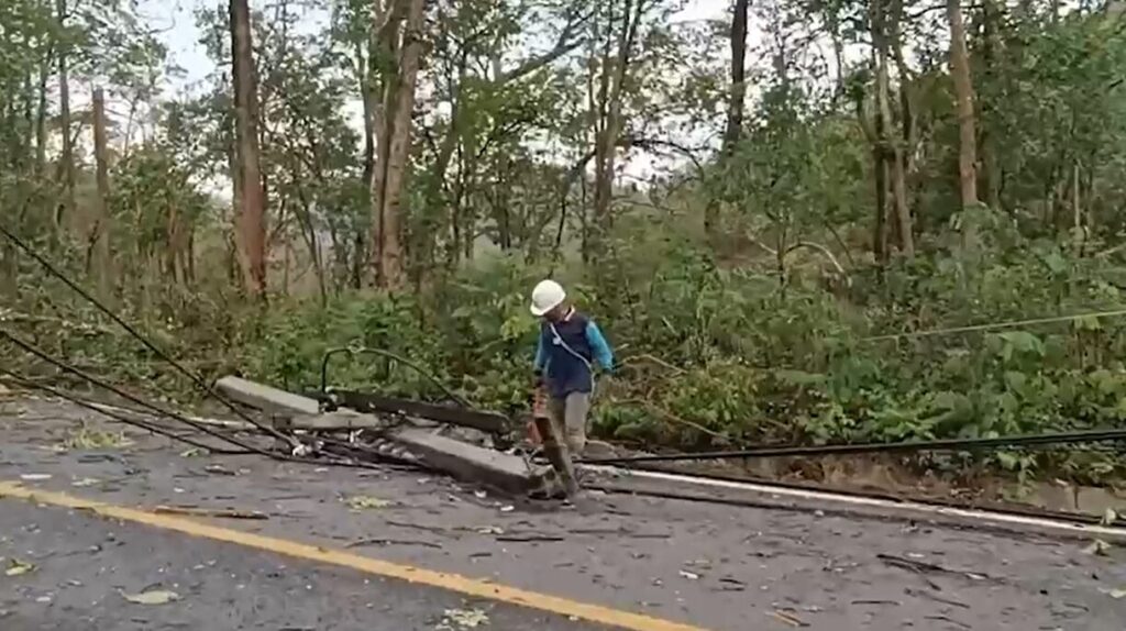 พายุฝนถล่มต้นไม้-เสาไฟหักโค่น ถนนแม่สะเรียง – เชียงใหม่