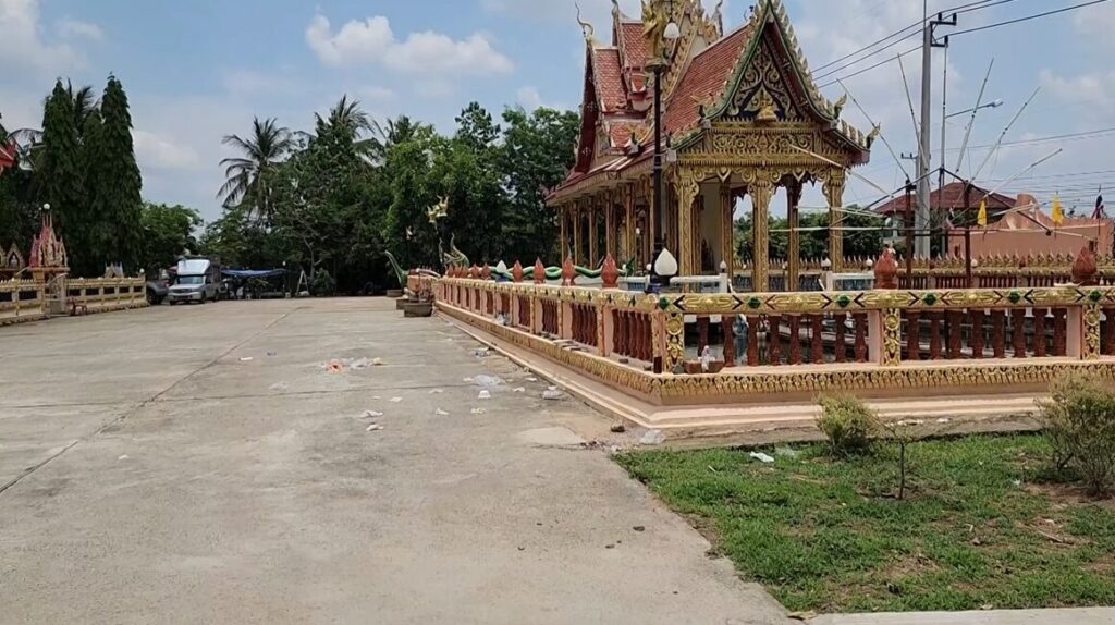 หลังเกิดเหตุ ผู้สื่อข่าวลงพื้นที่จุดเกิดเหตุ เป็นวัดเห็ดผึ้งหนองก่าม ตำบลหนองหมี อำเภอราศีไศล โดยจุดจัดงานอยู่ข้างโบสถ์ในวัดใกล้กับเวทีหมอลำ พบเศษขวด เศษแก้ว และเก้าอี้ อยู่ในสภาพพังเสียหาย กองอยู่ใต้ต้นไม้