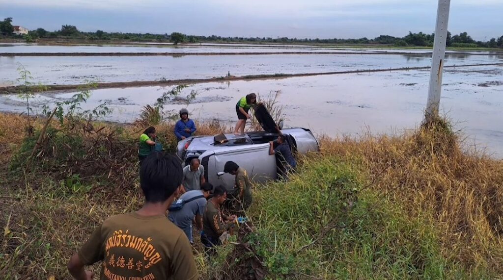 ตำรวจทางหลวง พยายามขับติดตามรถเก๋งสีดำ ทะเบียนกรุงเทพมหานคร ที่ขับอยู่บนทางหลวงหมายเลข 9 ซึ่งมีพฤติกรรมต้องสงสัย โดยเมื่อเรียกตรวจคนขับนอกจากไม่จอด ยังเร่งเครื่องหนีมุ่งหน้าถนน 347 ปทุมธานี-บางปะหัน เมื่อขับติดตามและตรวจสอบป้ายทะเบียน ก็พบว่าเป็นทะเบียนปลอม ตำรวจทางหลวงจึงพยายามขับประกบ เรียกให้จอดอีกครั้ง พร้อมแจ้งสกัดจับ แต่คนขับไม่จอด กระทั่งถึงถนนสายอยุธยา-เสนา รถต้องสงสัยเกิดเสียหลักขับชนรถคันหน้าอย่างแรง ทำให้รถ 2 คันพุ่งตกข้างทาง มีผู้บาดเจ็บรวม 5 คน ในจำนวนนี้คนอาการหนักสุด คือหญิงอายุ 31 ปี ที่นั่งมากับคนขับรถต้องสงสัย เพราะรถพังยับ กระจกหน้าแตก ยางระเบิดทั้ง 4 เส้น
