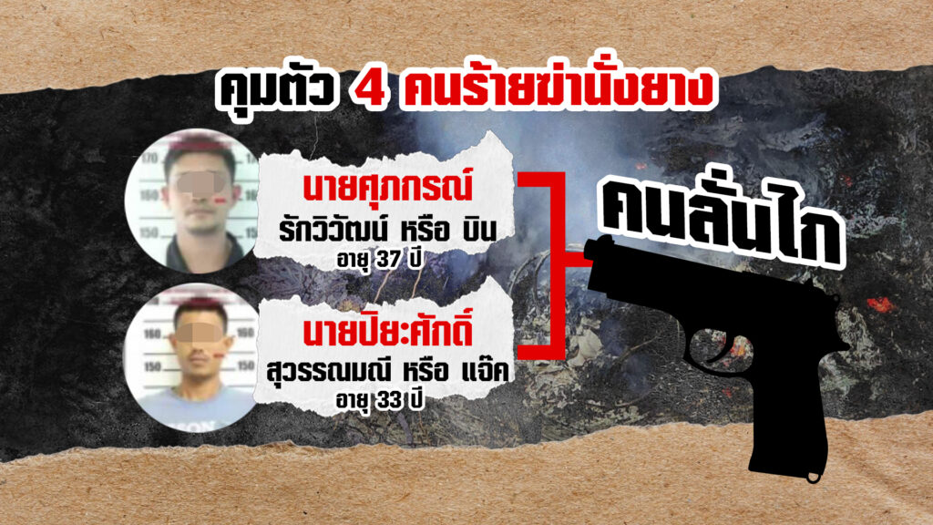 โดยนายบินรับสารภาพว่าเป็นคนลั่นไกสังหารผู้ตายทั้ง 3 ศพ ร่วมกับนายแจ็ค ลูกสมุน ส่วนนายแต้ม และนายเทือก ช่วยกันจุดไฟเผา แต่ระหว่างนั้นปรากฏว่านายสุรเชษฐ์ หรือโกเชษฐ์ ที่ถูกยิง ยังไม่ตาย พยายามจะดิ้นรนหนีไฟที่กำลังลุก แต่ถูกคนร้ายระดมยิงอีกหลายนัด