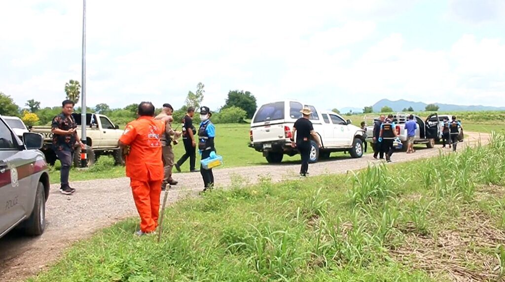 โดยวันนี้เวลาประมาณ 10.30 น. นายธนพล เสือส่าน กำนันบ้านทุ่งนานางหรอก ได้รับแจ้งจากชาวบ้านว่าพบศพอยู่บริเวณไร่อ้อย หมู่ 3 บ้านทุ่งนานางหรอก ต.ลาดหญ้า อ.เมือง จ.กาญจนบุรี คนที่ไปเจอ เป็นน้าชายของนายกอล์ฟคนในหมู่บ้าน ที่ออกไปหาของป่าแล้วไปเจอศพ ในสภาพนอนตะแคง ถูกมือถูกมัดไขว้หลัง แล้วมาบอกหลานชายคือนายกอล์ฟไปดูด้วยกัน แล้วนายกอล์ฟจึงแจ้งให้กำนันทราบ ทางกำนันก็แจ้งเรื่องต่อไปยังตำรวจ สภ.ลาดหญ้า ซึ่งเบื้องต้นศพสวมเสื้อผ้าตรงกับที่เป็นข่าว จึงรายงานตามลำดับชั้นบังคับบัญชา