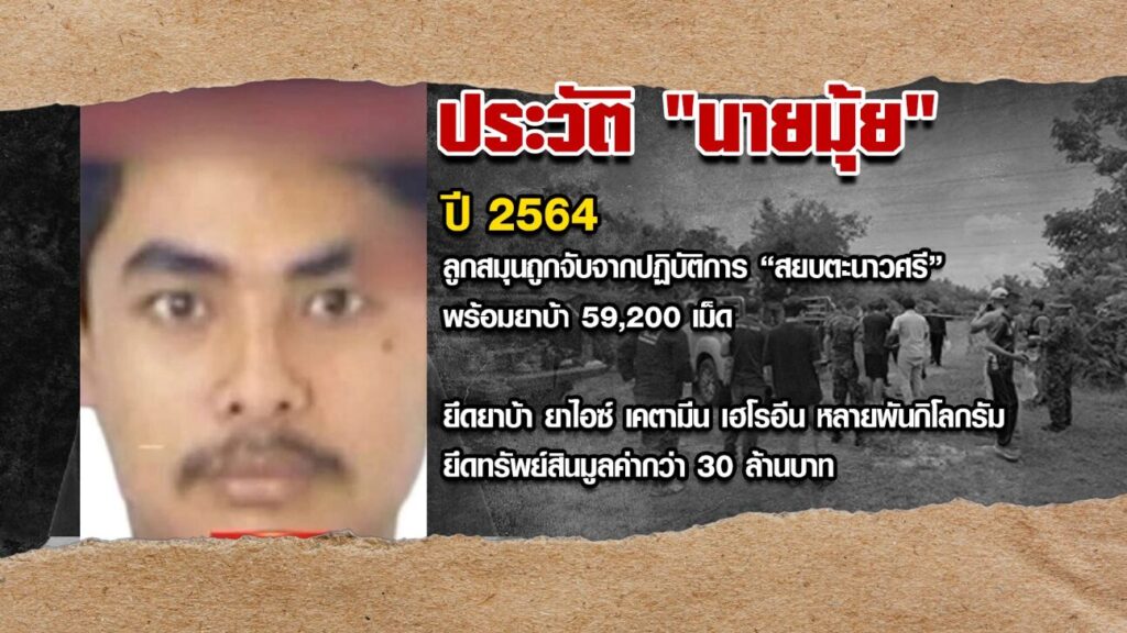 ส่วนนายสุทัศน์ หรือ “มุ้ย” ที่มีรายงานข่าวเป็นผู้บงการ และเป็นแฟนของน้ำ ก่อคดีจากความหึงหวงที่ดีเจเตเต้ไปข้องเกี่ยวกับแฟนสาว มีหมายจับหลายคดีเกี่ยวกับยาเสพติด และมีรายงานข่าวระบุว่า หลบหนีข้ามแดนไปพึ่งพาเจ้าพ่อค้ายารายใหญ่ที่ฝั่งอำเภอพญาตองซู ประเทศเมียนมา ตั้งแต่ปี 2560 ก่อนหน้านี้ ลูกสมุนของเขาถูกจับพร้อมยาบ้า 59,200 เม็ด ในปี 2564 จากปฏิบัติการ “สยบตะนาวศรี” สามารถยึดยาบ้า ยาไอซ์ เคตามีน เฮโรอีน รวมหลายพันกิโลกรัม และถูกยึดทรัพย์สินมูลค่ากว่า 30 ล้านบาท เขาถูกจัดอยู่ในบัญชี ผู้ต้องหายาเสพติดรายสำคัญประจำปี 2565 และมีเงินรางวัลนำจับสูงถึง 1 ล้านบาท