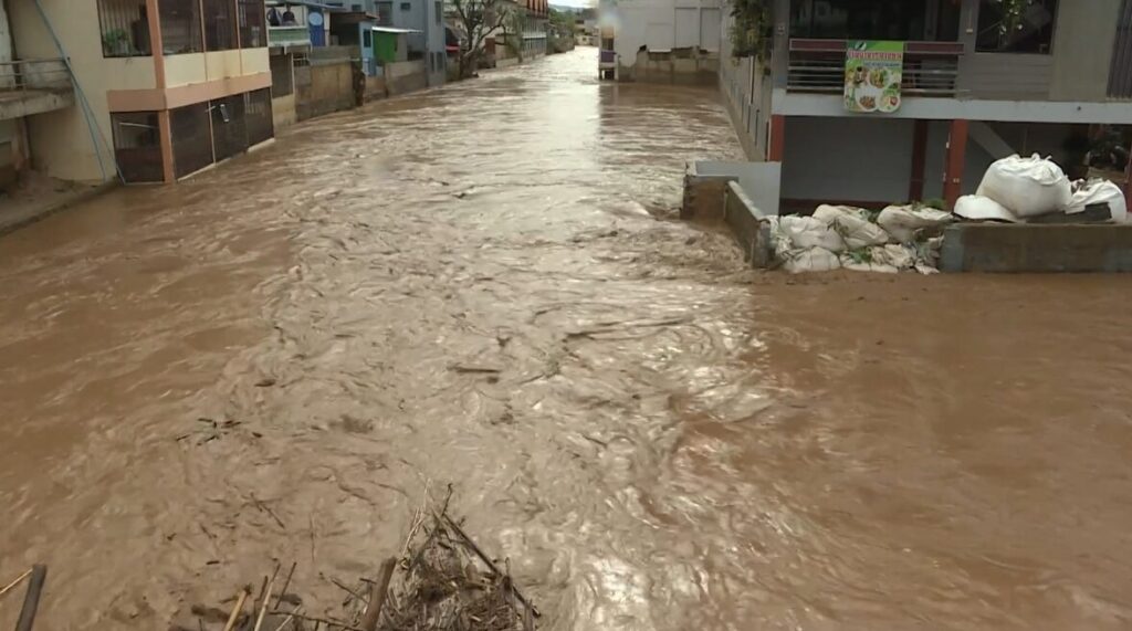 เชียงราย 24 พ.ค.-เพิ่งเริ่มต้นฤดูฝน แต่ฝนที่ตกหนักในเมียนมา ทำให้ช่วงเช้ามืดวันนี้ น้ำในแม่สายชายทะลักเข้าท่วมหลายชุมชนใน อ.แม่สาย ชาวบ้านขนของหนีน้ำโกลาหล และตื่นกลัวจะเกิดน้ำท่วมใหญ่ซ้ำเหมือนปีที่แล้ว หนำซ้ำยังต้องกังวลกับสารพิษที่ปนเปื้อนในลำน้ำสายด้วย