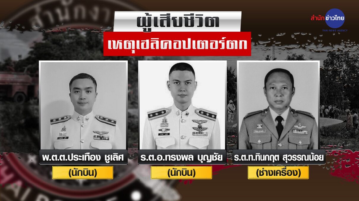 ร.ต.ท.ทินกฤต สุวรรณน้อย อายุ 55 ปี ตำแหน่ง ช่างอากาศยาน (สบ1) รอง สว.(อก.) กลุ่มงานช่างอากาศยาน กองบินตำรวจ มอบเงินช่วยเหลือเบื้องต้น 1.9 ล้านบาท ปูนบำเหน็จเลื่อนยศเป็น พ.ต.ท. -สำนักข่าวไทย