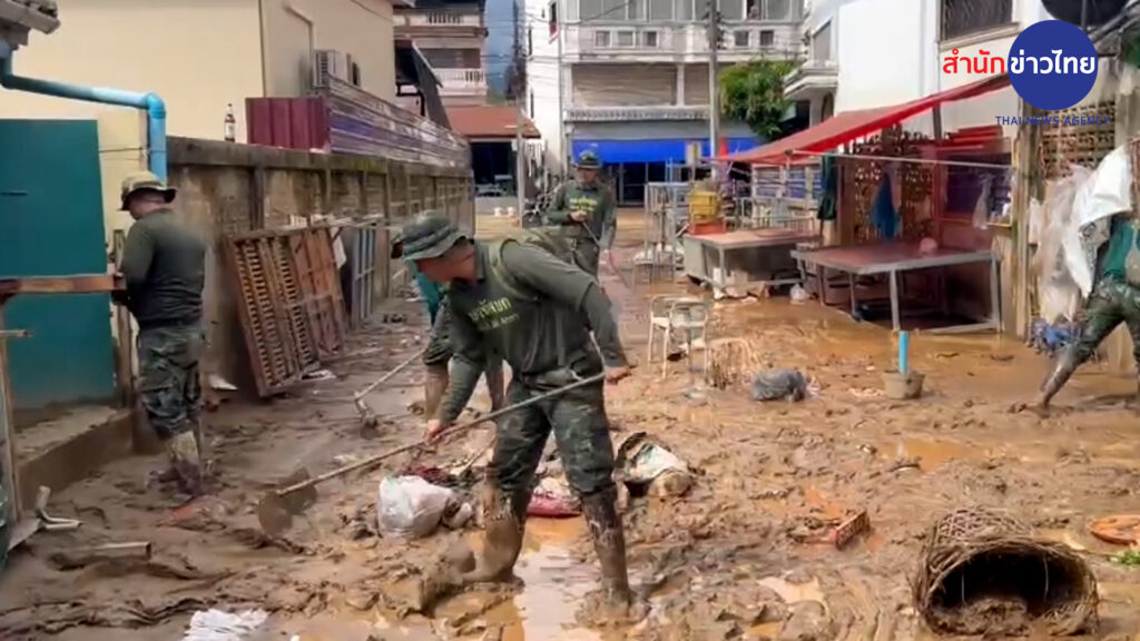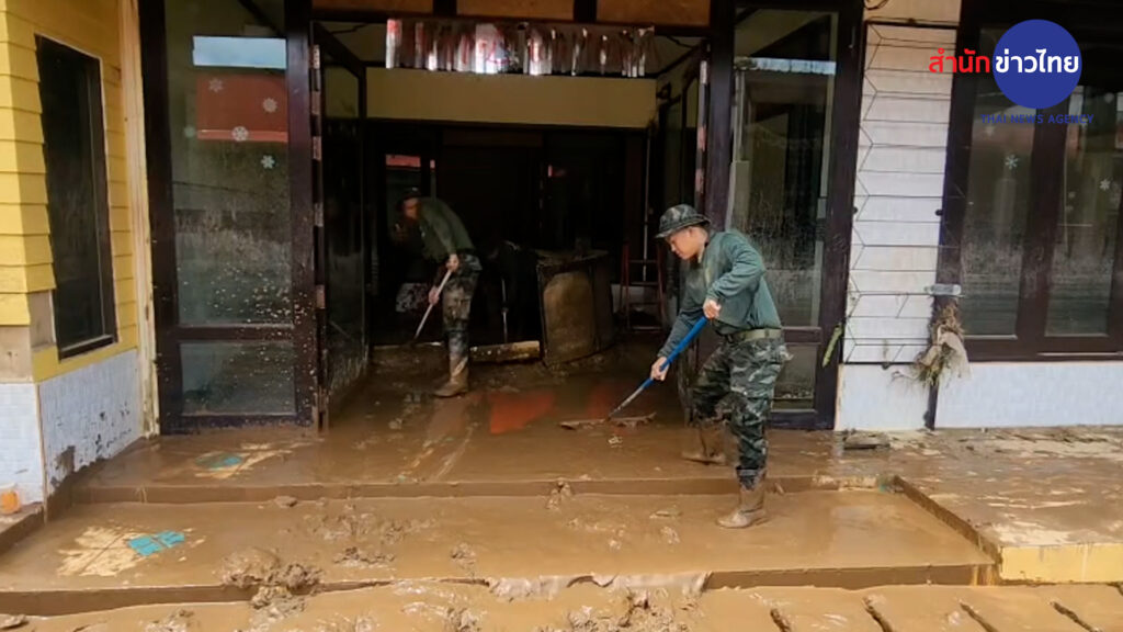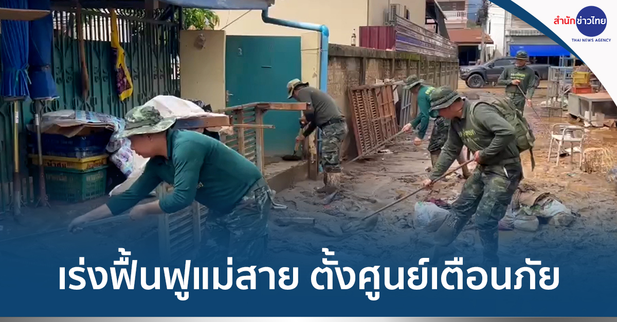 เชียงราย 25 พ.ค.- หลายหน่วยงานระดมกำลังเร่งฟื้นฟู อ.แม่สาย หลังน้ำลด ขณะที่ผู้ว่าฯ เชียงราย สั่งตั้งศูนย์บัญชาการเหตุการณ์เฉพาะกิจ วางแนวทางเตือนภัย ป้องกันเหตุซ้ำ