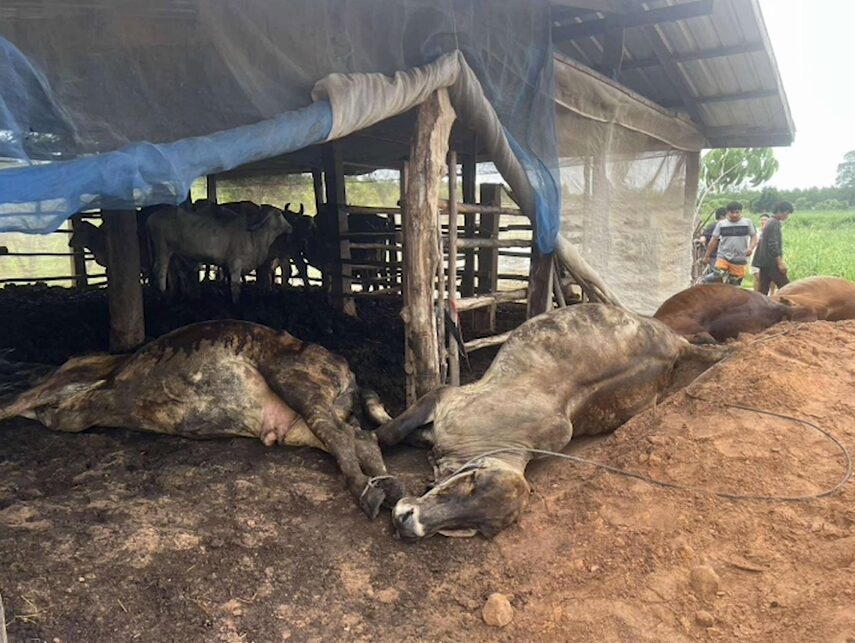 ฟ้าผ่ากลางคอกวัว ตายรวดเดียว 4 ตัว