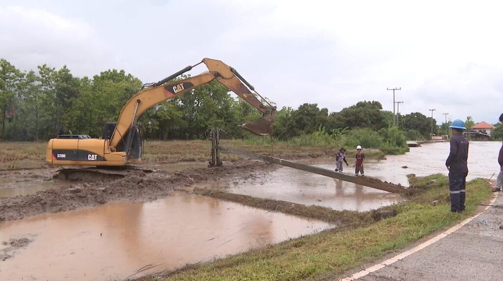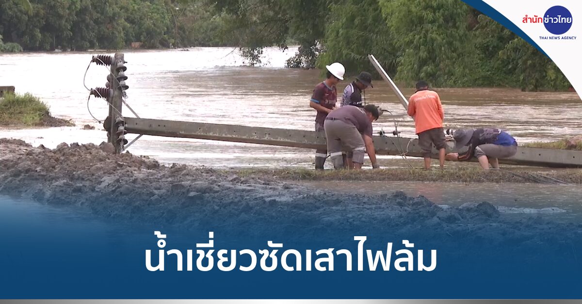 เชียงใหม่ 27 พ.ค. – กระแสน้ำในลำน้ำแม่ขาน จ.เชียงใหม่ ยังเชี่ยวกราก พัดถนนขาด เสาไฟฟ้าล้ม เจ้าหน้าที่เร่งตั้งเสาใหม่ ชาวบ้าน เกือบร้อยครัวเรือน เดือดร้อนหนัก