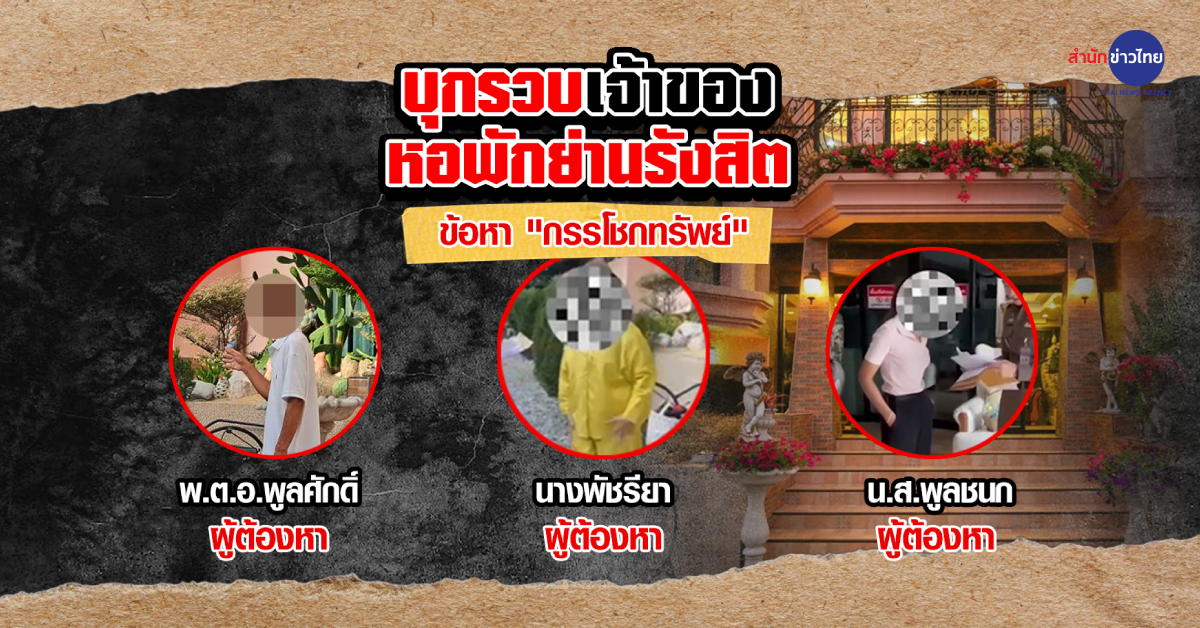 ปทุมธานี 28 พ.ค. – ตำรวจปทุมธานี บุกรวบเจ้าของหอพักย่านรังสิต พร้อมครอบครัว ข้อหากรรโชกทรัพย์ หลังมีนักศึกษาแจ้งความร้องทุกข์ว่า เจ้าของหอพักแห่งนี้ทำร้ายร่างกาย ยึดทรัพย์สินอื่นๆ ของผู้เช่าโดยไม่ยอมคืน
