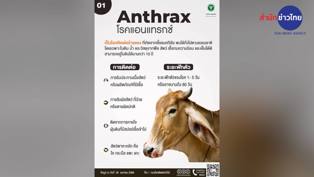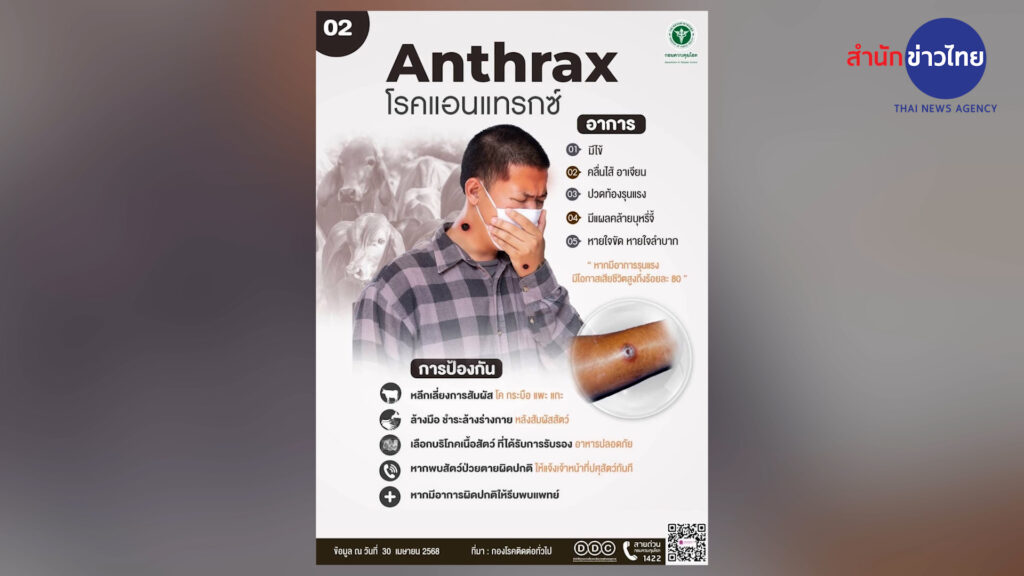 วันนี้ (2 มิถุนายน 2568) จะลงสอบสวนโรคเพื่อเฝ้าระวังกลุ่มเสี่ยงและผู้สัมผัสเชื้อ เน้นย้ำให้ประชาชน โดยเฉพาะในพื้นที่อำเภอเมืองสระแก้วและพื้นที่ใกล้เคียง ปฏิบัติตามมาตรการป้องกันโรคอย่างเคร่งครัด หลีกเลี่ยงการสัมผัสโค กระบือ แพะ แกะ ที่ป่วยหรือตายผิดปกติ ล้างมือและชำระล้างร่างกายหลังสัมผัสสัตว์ เลือกบริโภคเนื้อสัตว์ที่ได้รับการรับรองความปลอดภัย บริโภคอาหารที่ปรุงสุก ร้อน และสะอาดเท่านั้น หากพบสัตว์ป่วยหรือตายผิดปกติ ห้ามชำแหละสัตว์ ให้แจ้งเจ้าหน้าที่ปศุสัตว์ทันที และหากมีอาการผิดปกติ ให้รีบไปพบแพทย์ .-สำนักข่าวไทย