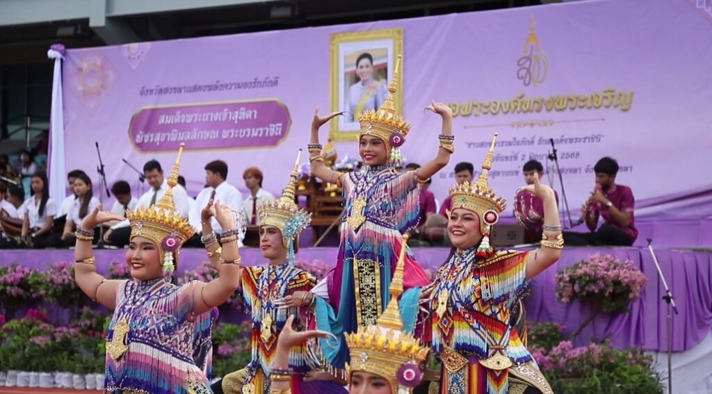 ก่อนเข้าสู่พิธี ได้มีการจัดแสดงศิลปวัฒนธรรมและการแสดงดนตรี โดยมีวงโยธวาทิตและวงดนตรีสากลจากโรงเรียนมหาวชิราวุธ และโรงเรียนวรนารีเฉลิมสงขลา ร่วมบรรเลงบทเพลงอย่างไพเราะ พร้อมด้วยการแสดงโนราเทิดพระเกียรติจากนักศึกษามหาวิทยาลัยราชภัฏสงขลา มหาวิทยาลัยเทคโนโลยีราชมงคลศรีวิชัย และโรงเรียนแจ้งวิทยา รวมถึงการแสดงโขนเทิดพระเกียรติ ที่ถ่ายทอดความอ่อนช้อย งดงาม และความภาคภูมิใจในศิลปวัฒนธรรมท้องถิ่น ควบคู่กับการแสดงออกถึงความจงรักภักดีต่อสมเด็จพระนางเจ้าสุทิดา พัชรสุธาพิมลลักษณ พระบรมราชินี อย่างสมพระเกียรติ