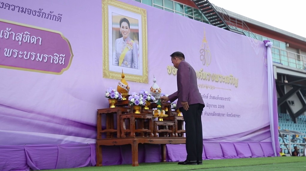 สงขลา 2 มิ.ย. – จังหวัดสงขลา จัดกิจกรรม “ชาวสงขลารวมใจภักดิ์ รักสมเด็จพระราชินี” ประชาชนกว่า 5,000 คน ร่วมแปรอักษร “ทรงพระเจริญ คนสงขลารักพระราชินีฯ” แสดงพลังความจงรักภักดีอย่างยิ่งใหญ่ เนื่องในโอกาสวันเฉลิมพระชนมพรรษา 3 มิถุนายน 2568