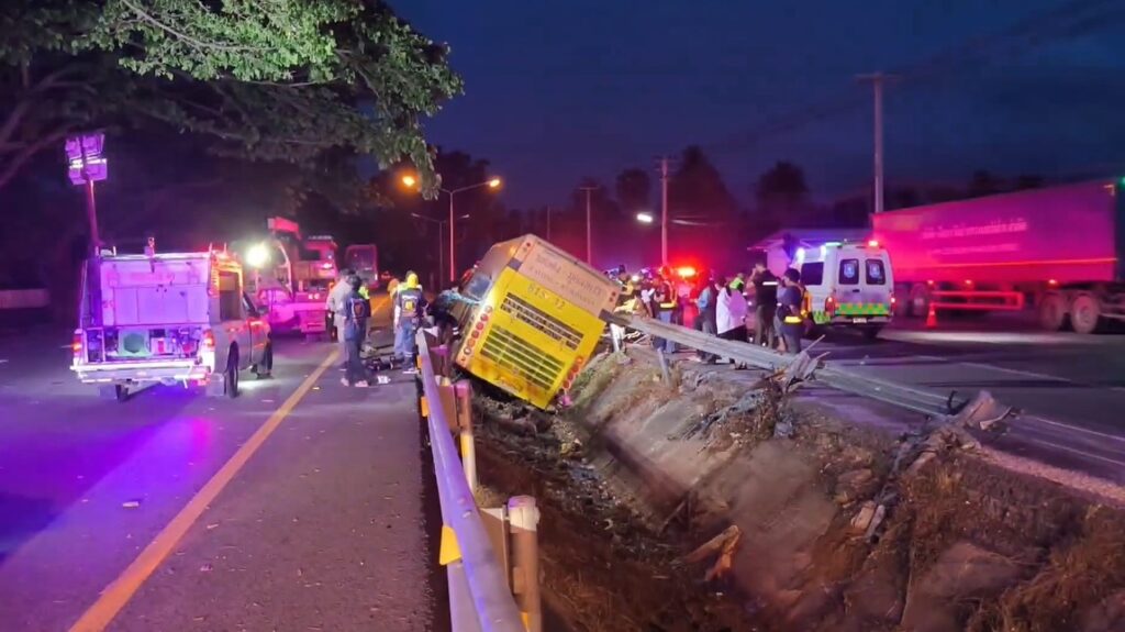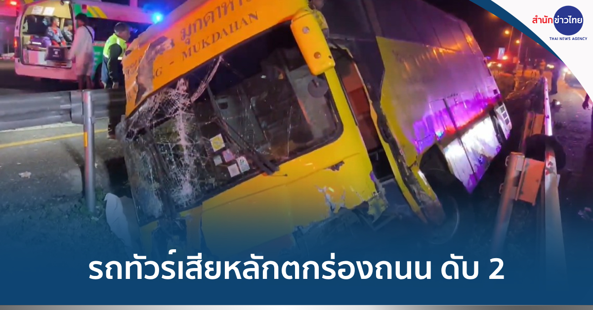 ประจวบคีรีขันธ์ 4 มิ.ย. – รถทัวร์ตกร่องกลางถนนชนเสาไฟ บนถนนเพชรเกษม อ.เมืองประจวบคีรีขันธ์ ผู้โดยสารเสียชีวิต 2 ราย บาดเจ็บสาหัส 5 คน คนขับยอมรับหลับใน