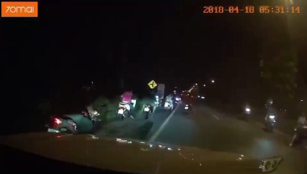 ภาพจากกล้องหน้ารถของเจ้าหน้าที่ จับภาพเหตุการณ์เมื่อช่วงเช้ามืดเวลาประมาณ 01.00 น. ที่ผ่านมา หลังจากกลุ่มวัยรุ่นนักซิ่งนักแต่งรถจักรยานยนต์นัดหมายรวมตัวกัน เพื่อทำการแข่งขันรถจักรยานยนต์ในช่วงกลางดึกสร้างความเดือดร้อนรำคาญให้กับประชาชน บนถนนสายอ้อมค่ายวชิราวุธ ต.ปากพูน อ.เมือง จ.นครศรีธรรมราช