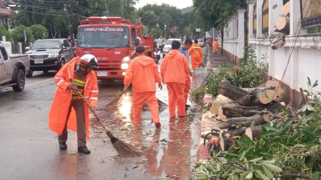 หลังเกิดเหตุ เจ้าหน้าที่เทศบาลเมืองเลยและเจ้าหน้าที่ตำรวจจราจร สภ.เมืองเลย เข้าตัดต้นไม้ออก ให้การจราจรกลับมาใช้ได้ตามปกติอย่างรวดเร็ว นอกจากนี้ ยังมีต้นไม้ล้มอีกหลายจุด ทำให้ไฟฟ้าดับเป็นบริเวณกว้าง ขณะที่ถนนหลายสายในเขตเทศบาลเมืองเลย ระบายน้ำไม่ได้ เอ่อท่วมผิวถนน โดยเฉพาะที่รอบวงเวียน ถนนนกแก้ว ถนนชุมสาย ถนนเสริฐศรี ถนนสถลเชียงคาน และถนนพิพัฒนมงล รวมทั้งถนนเลย-เชียงคาน มีน้ำท่วมหลายจุด อย่างไรก็ตาม สถานการณ์ได้กลับคืนสู่ภาวะปกติ หลังจากที่ฝนหยุดตก นานกว่า 1 ชั่วโมงครึ่ง.-สำนักข่าวไทย