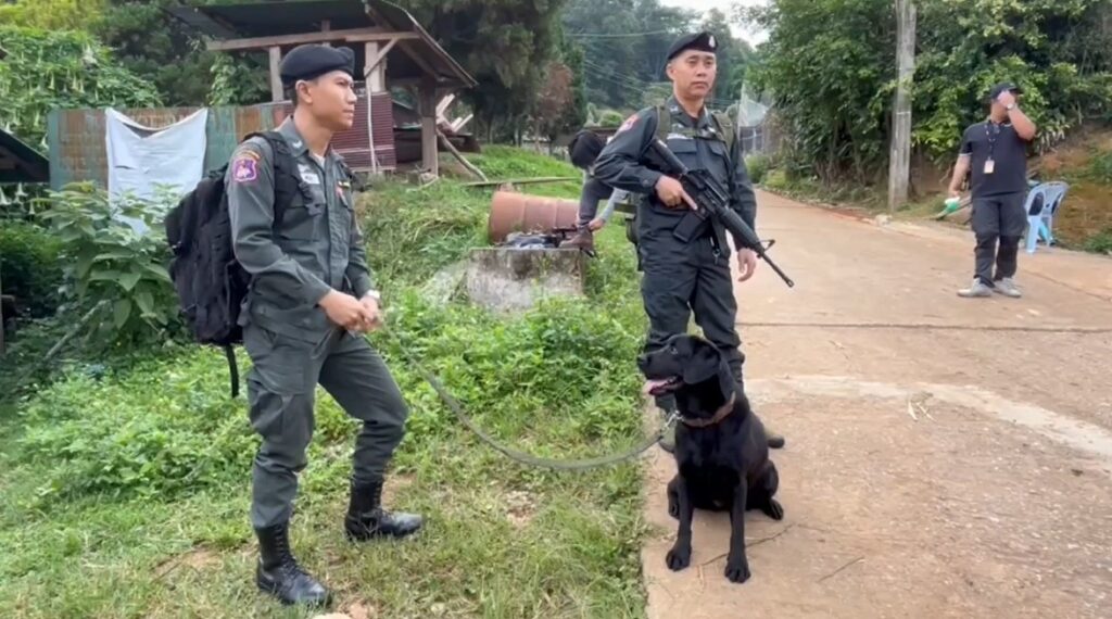เจ้าหน้าที่ตำรวจตระเวนชายแดนที่ 32 (ตชด.32) นำ “โทมี่” สุนัขตำรวจ K9 พันธุ์ลาบราดอร์ เข้าร่วมภารกิจติดตามจับกุมนายซ้งปอ อายุ 55 ปี คนร้ายก่อเหตุฆ่าโหดอดีตภรรยาและน้องชายอดีตภรรยาเสียชีวิต ในพื้นที่บ้านร่มฟ้าผาหม่น หมู่ 15 ต.ปอ อ.เวียงแก่น จ.เชียงราย เหตุเกิดเมื่อวันที่ 6 และ 8 มิถุนายนที่ผ่านมา ก่อนหลบหนีเข้าป่าดอยผาหม่น ซึ่งเป็นภูเขาสูงชันและเต็มไปด้วยถ้ำและซอกเขา ทำให้ภารกิจไล่ล่ายากลำบาก แม้ใช้โดรนตรวจจับความร้อนทั้งกลางวันและกลางคืนก็ยังไม่พบตัว