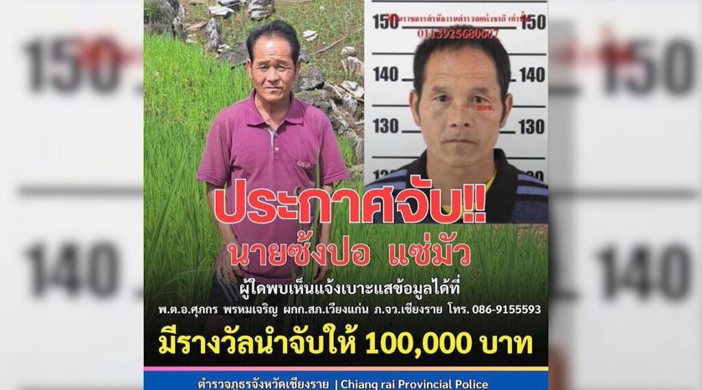 เชียงราย 9 มิ.ย. – ญาติสุดแค้น ตั้งค่าหัว 100,000 บาท ล่าอดีตสามีโหดฆ่า 2 ศพ หลังเจ้าหน้าที่ระดมกำลังค้นหายังไร้ร่องรอย