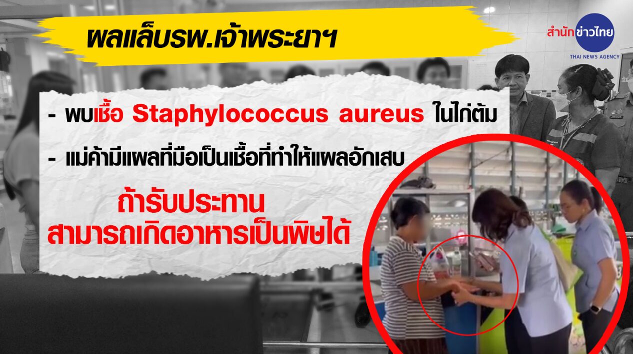 ความคืบหน้า เมื่อวานนี้ (11 มิ.ย.) ผลการตรวจเชื้อที่ห้องปฏิบัติการของ รพ.เจ้าพระยาอภัยภูเบศร ออกแล้วหลังเก็บตัวอย่างอาหารที่คุณครูและนักเรียนรับประทาน วานนี้ ผลออกมาแล้วว่าพบเชื้อ สตาฟิโลคอคคัส ออเรียส ตรงกับที่ตรวจพบในไก่ต้ม และอาเจียนของผู้ป่วย 4 ตัวอย่าง และตรงกับเชื้อที่ตรวจพบในแผลที่มือแม่ค้า เป็นเชื้อที่ทำให้แผลอักเสบ ถ้ารับประทานก็มีอาหารเป็นพิษได้